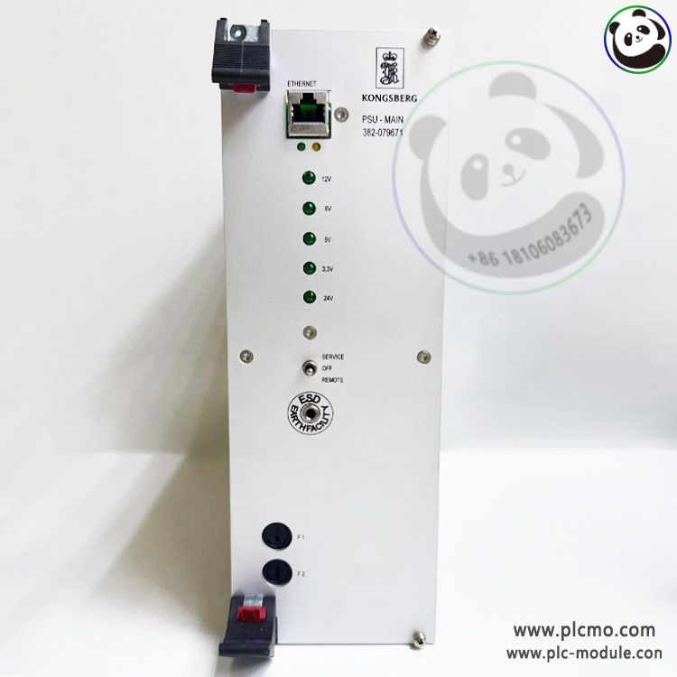 KONGSBERG 382-079671, designated PSU-Main Power Supply (P/N: AE10082-G), is the primary electrical power conversion and distribution unit for Kongsberg maritime systems. It reliably transforms incoming AC vessel power into stable, regulated DC power required by critical subsystems like the HiPAP processor. Engineered for 24/7 operation in harsh marine environments, it ensures continuous system availability by providing clean power and integrated electrical protection.
