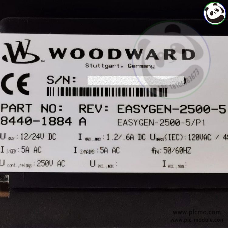 WOODWARD 8440-1884 is a Genset Controller within the EASYGEN-2500-5/P1 series, designed for comprehensive control, protection, and monitoring of single-engine generator sets. This advanced controller provides integrated speed and voltage regulation, synchronizing functions, and extensive protective capabilities. It supports both standalone operation and integration into power management systems, ensuring reliable automatic start/stop sequences, load management, and fault protection for prime or standby power applications in industrial and commercial settings.